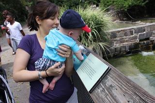 We were excited to show the boys the penguins so that we could explain that Penguin is really a dog and that real penguins are birds. Riley was mostly just interested in the picture plaque about the penguins.